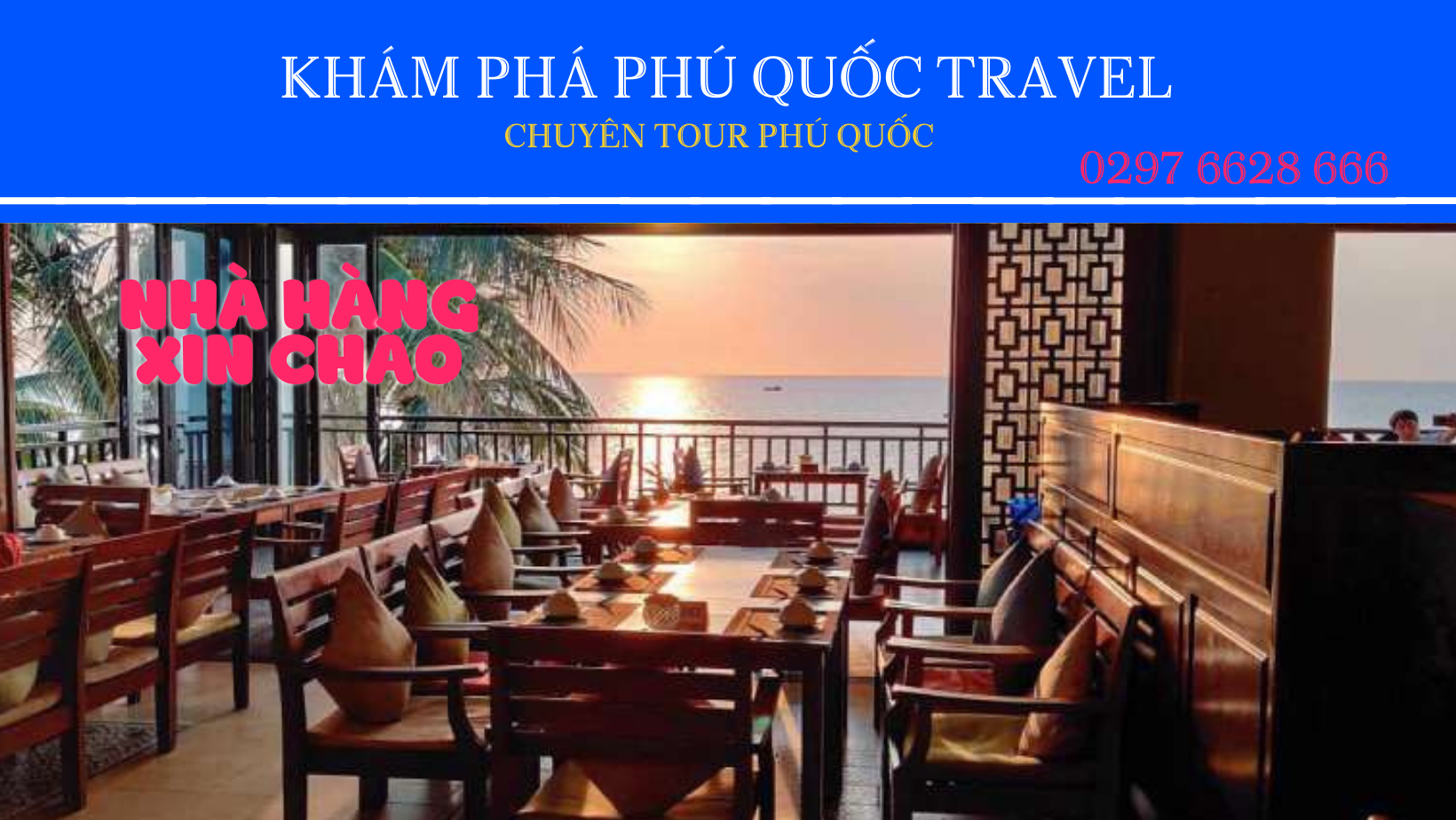 Nếu bạn tìm một nơi romantic để ngắm hoàng hôn khi dùng bữa tối thì Nhà Hàng Xin Chào là nơi bạn phải ghé khi du lịch Phú Quốc. Nằm cạnh bờ biển gần Chợ Đêm, nhà hàng với thiết kế kiểu Pháp này bán hải sản Phú Quốc ở tầng trệt và cafe bar rooftop trên lầu, nơi bạn có thể ngắm toàn bộ khung cảnh biển của TT Dương Đông. Tuy mới khai trương vào tháng 6/2016, Xin Chào nhanh chóng được nhiều người dân địa phương và du khách biết đến qua các kênh truyền miệng. Ban ngày bạn có thể uống cà phê và ngắm thuyền của các ngư dân đi đánh cá, buổi trưa Xin Chào có các món cơm gia đình, đặc biệt buổi tối nhà hàng nướng hải sản tươi ngoài trời. Vào ban đêm, du khách có thể ngắm các thuyền đi câu mực sáng rực bầu trời. Bạn không thể bỏ lỡ Xin Chào trong chuyến đi Phú Quốc.